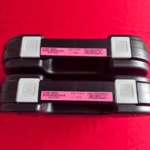 SPECIFICATIONS: GLOCK G19M MOS 9MM- A Pair of Consecutive Serial Set G19M 9MM 15+1 4.0″ MOS FS # 3-15RD MAGS | FRONT SERRATIONS 9mm MANUFACTURER: GLOCK FAMILY: G19 Series MODEL: G19M MOS TYPE: Semi-Auto Pistol ACTION: Safe Action CALIBER/GAUGE: 9mm FINISH: nDLC Finish FINISH TYPE: Black FRAME: Polymer Frame BARREL: 4.02″ OVERALL LENGTH: 7.28″ CAPACITY: 15 + 1 # OF MAGAZINES: 3 MAG DESCRIPTION: 15 rd. SIGHTS: Fixed Glock Sights SIGHT TYPE: Fixed Sights OPTICS READY CUT WEIGHT: 23.99 oz. SHIPPING WEIGHT: 3.5 lbs. SAFETY FEATURES: No Manual Safety CASE: Plastic ADDL INFO: Front Slide Serrations ADDL INFO: Flared Mag-Well ADDL INFO: Modular Optics System