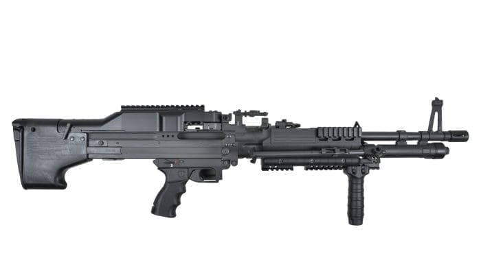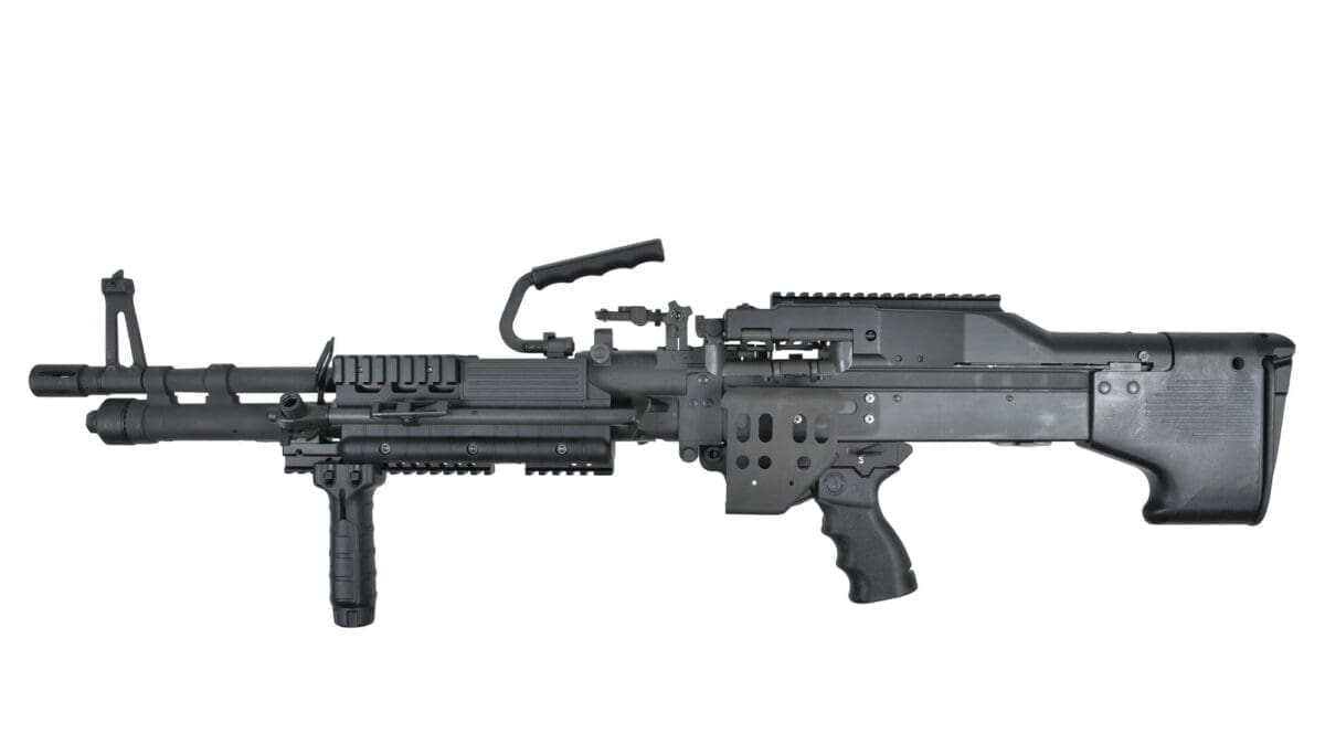 The most recent upgrades to the M60 Series of machine guns are represented by the 7.62mm NATO M60E6 General Purpose Machine Gun (GPMG). It is a gas-powered, belt-fed, air-cooled machine gun with disintegrating links. It has a quick-change barrel and fires from an open bolt. A machined aluminum feed cover with an incorporated M1913 Picatinny rail for mounting optics is a feature of the M60E6. The attachment of infrared laser aiming systems and other sensors is made possible by an aluminum M1913 rail handguard, giving the weapon 24-hour capabilities.